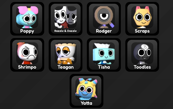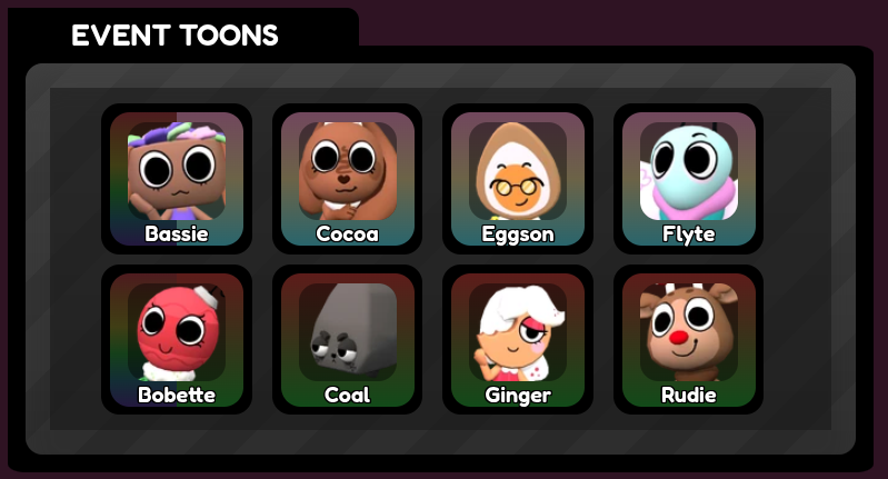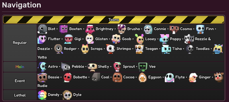 Upon first starting the game, Boxten and Poppy are offered as one of the two starter Toons. Whichever one the player doesn't select, along with other Toons, can be bought in Dandy's Store with Ichor. (Ex; selecting Poppy at the start means that Boxten must be purchased, and vice versa). Additionally, most characters have prerequisites that must be fulfilled before they can be purchased, such as reaching a certain amount of Research on a Twisted or performing a certain action a set number of times.