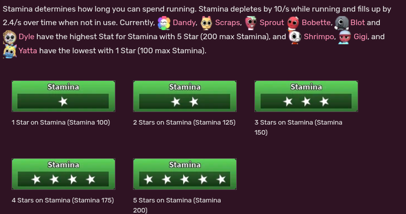 - Dandy and Dyle don't have 3 Stars on a Stat, but both are developer-exclusive and therefore shouldn't need 3 Stars in a Stat, as it would hinder them.